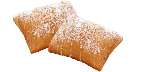Powder Sugar coated Fried Bread Doughs served with Caramel Sauce on the side