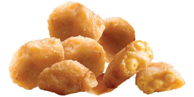 Cheesy macaroni bites paired with a tangy buffalo sauce for a delightful side treat.
